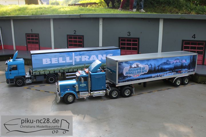 Erste gemeinsame Ausfahrt von zwei meiner Trucks, die Parcours - Probefahrt vom 3D Druck MAN F2000 und meinem  nach fast 10jährigem Dornröschenschlaf wieder reaktiviertem King Hauler der von meinem Sohn gesteuert wurde.